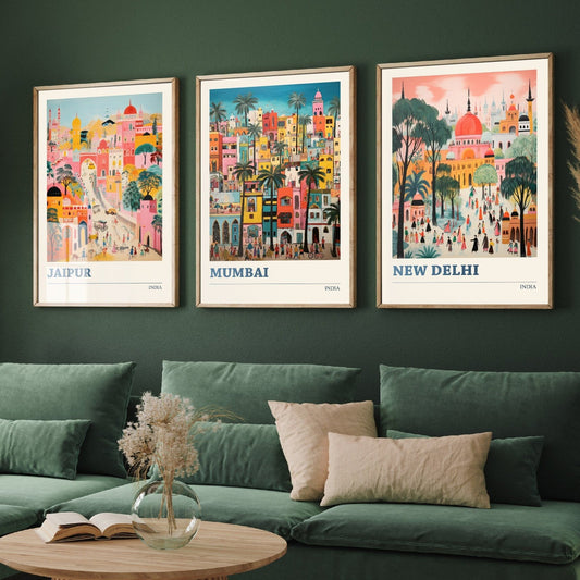 Set of Three Indian Travel Posters - Jaipur, Mumbai, New Delhi