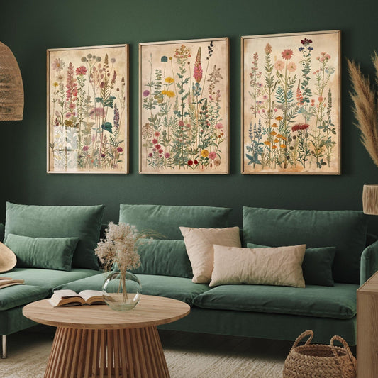 Set of Three Vintage Flower Prints V6 - Set of 3 Floral Plants Paintings Poster