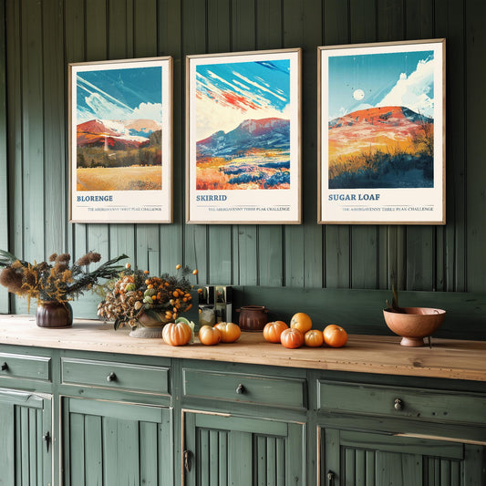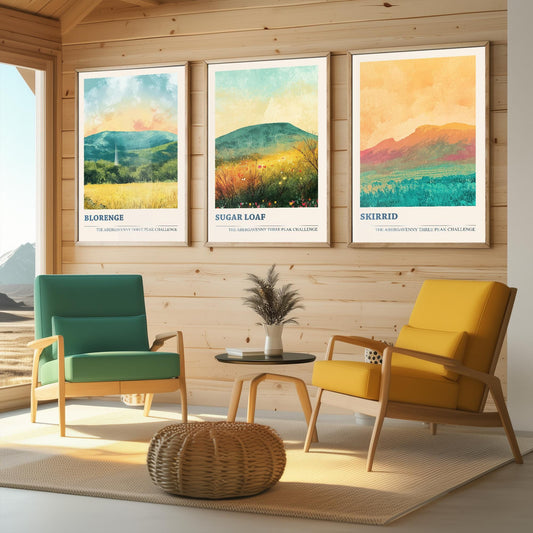 The Abergavenny Three Peaks Challenge - Set of Three Art Prints - 3 Posters - Sugar Loaf, Skirrid & Blorenge Mountain Painting Arctic Energy