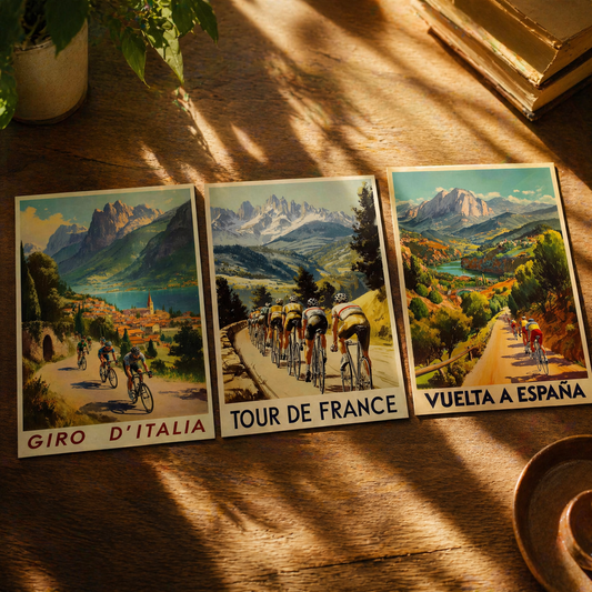 Vintage Cycling Posters - Giro D'Italia, Tour de France, Vuelta a Espana Art Prints - 3 Bicycle Painting Gift Grand Tour Road Set of Three