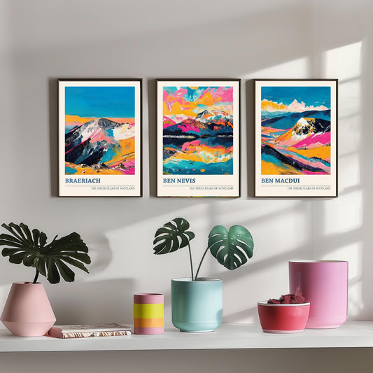 Set of Three Prints - Braeriach, Ben Nevis, Ben Macdui - The Mountains of Scotland