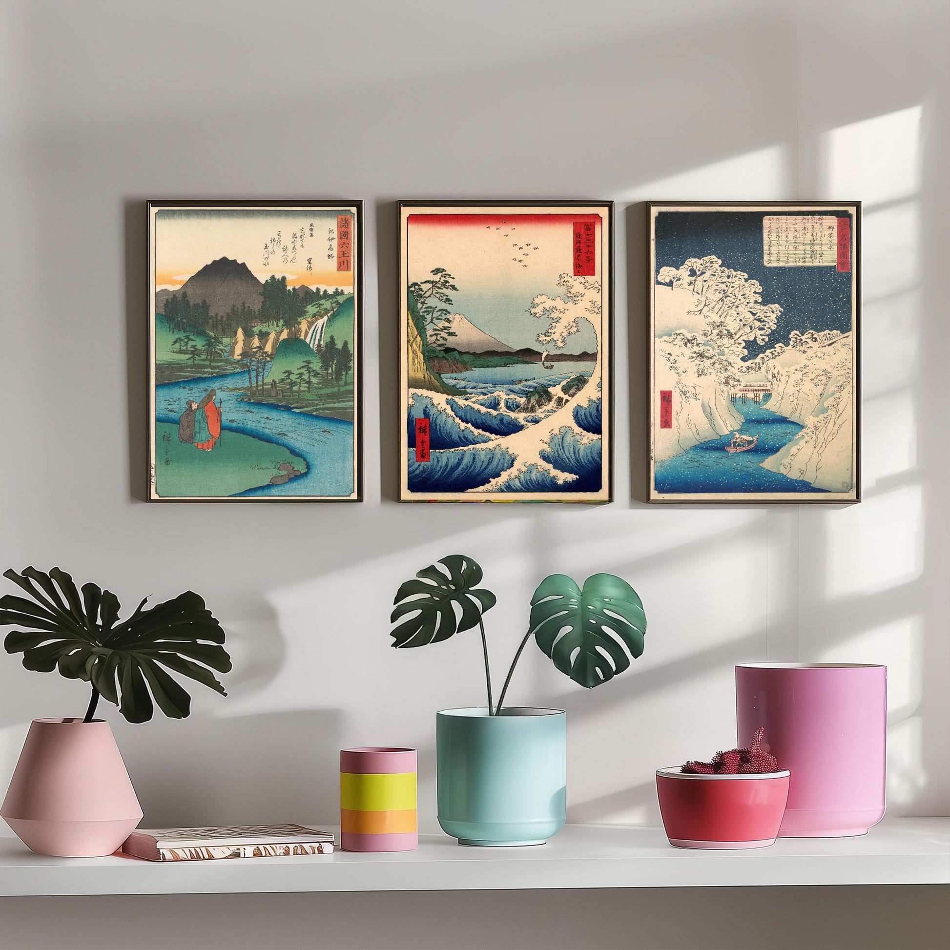Set of Three Utagawa Hiroshige Water Prints - 3 Classic Paintings - Photo Poster Wall Art Gift Giclée Museum Quality - Jewel River, Seascape